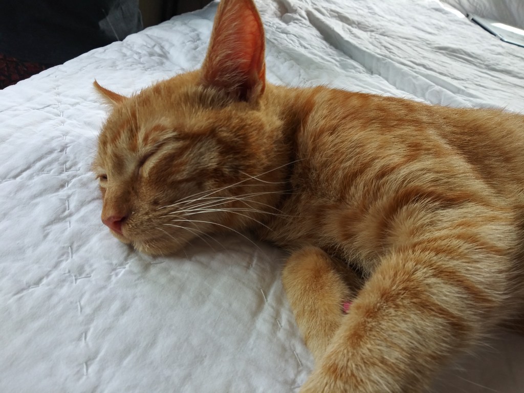 The other night, Teddy came in bed right between me and Peter Jack. I swore when we got these cats that they would not be allowed in my bed, but somehow they have worn me down and make their way into the bed every night and I can’t say I hate it. Teddy nestled himself between us, in a position where he could touch both of us with some part of his body. He threw his head back onto Peter Jack’s belly, promptly falling asleep. He had just gotten his stitches out and was back to his usual self. I felt grateful that he was here to spend another night with us. None of us are guaranteed tomorrow.