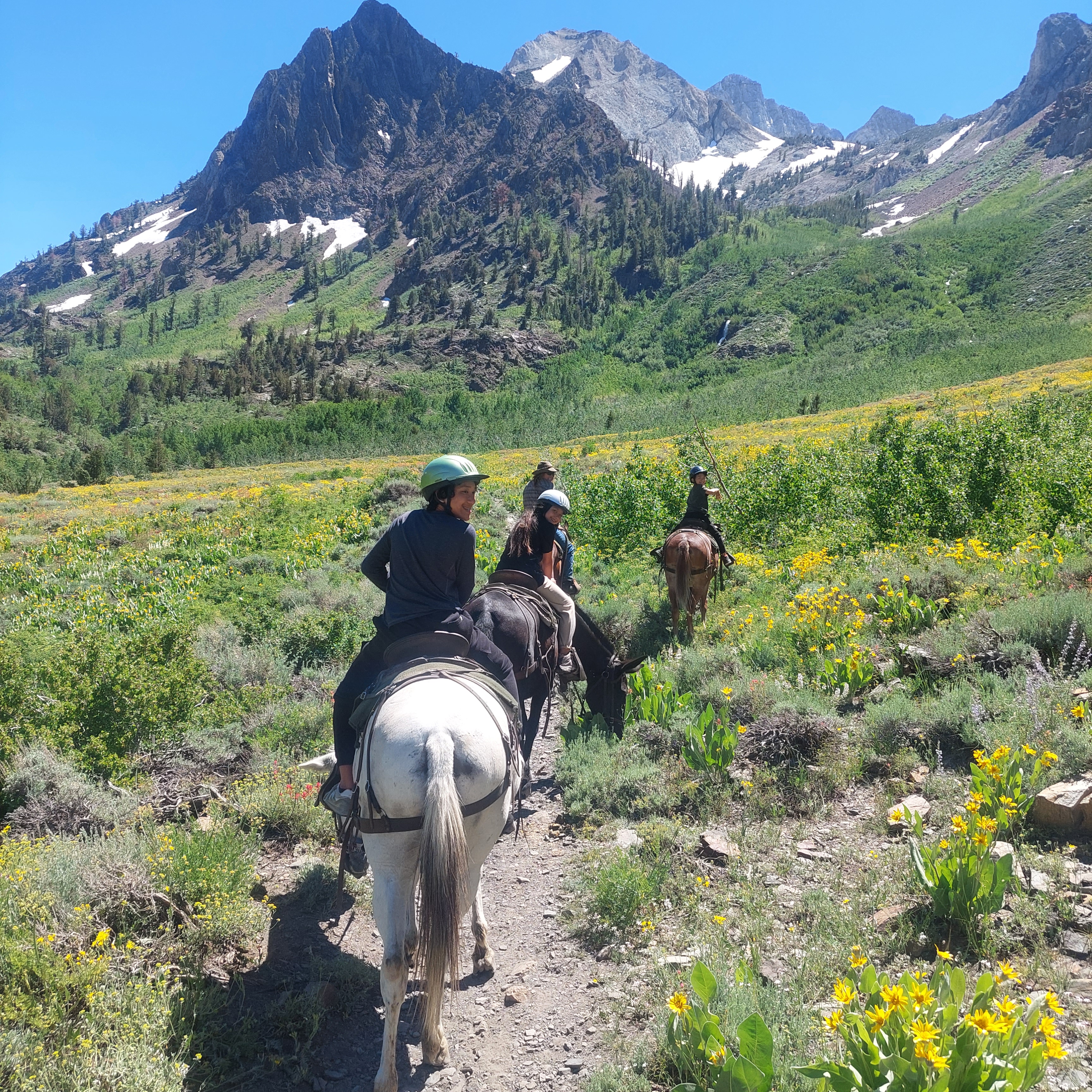 I thought about those words the next day when we went horseback riding into a canyon filled with a super bloom of colorful flowers, patches of snow against the mountain sides, a waterfall rushing in the distance, another clear blue sky and perfect weather.